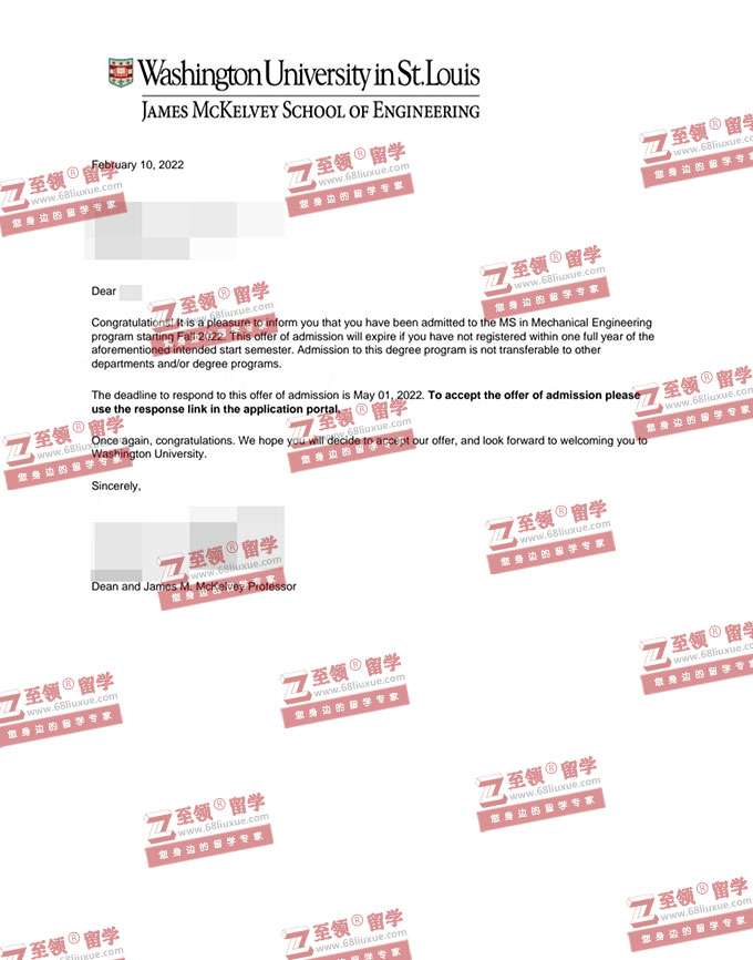 录取结果:Washington University in St. Louis,Master of Science in Mechanical Engineering圣路易斯华盛顿大学机械工程硕士录取
