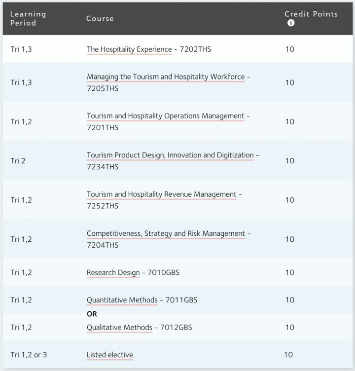 您将在财务规划、酒店管理和营销等领域建立核心业务技能,并通过了解如何在多元文化背景下进行管理来增强这些技能。作为一名毕业生,您将成为一个自信的领导者,对全球旅游和酒店行业的复杂问题和挑战敏感。