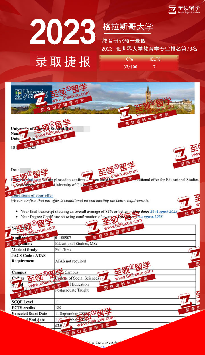 录取结果:University of Glasgow,MSc Educational Studies,格拉斯哥大学教育研究硕士录取