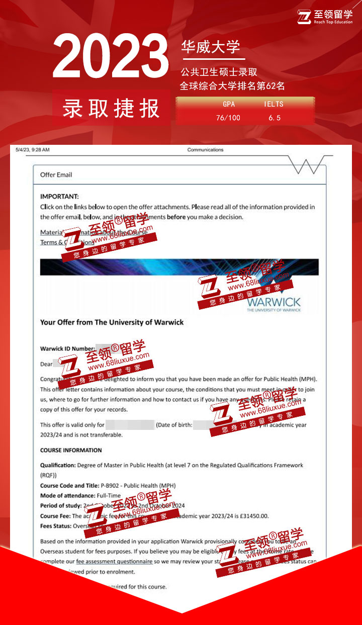 录取结果:Universtiy of Warwick ,MPH 华威大学公共卫生硕士录取