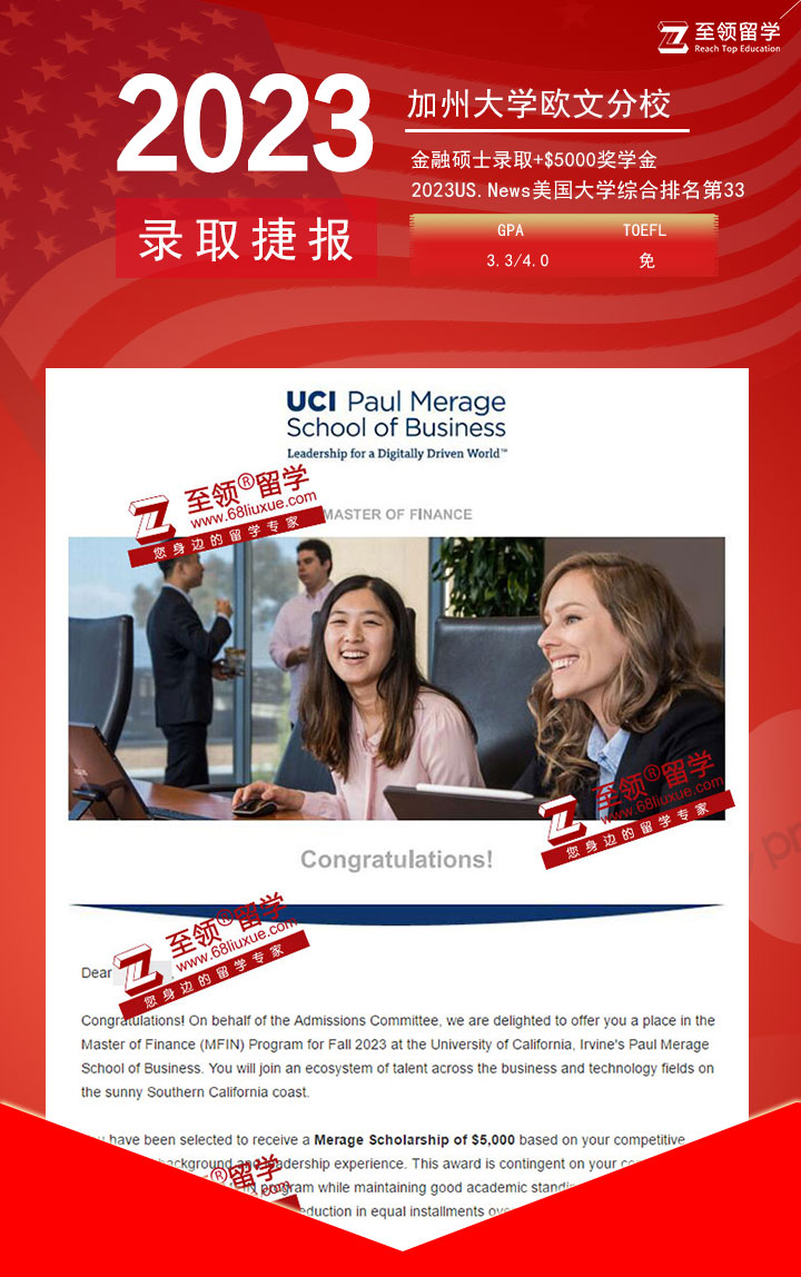 录取结果:UCI,MSF 加州大学欧文分校金融硕士录取,奖学金$5000