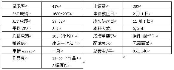由于艺术设计领域跟文科理科工科商科等不太一样,在U.S. News排出的十大名校中有一半是我们平时不大熟悉的。这些艺术院校对SAT、ACT、GPA等成绩要求并没有特别高,而是对作品集(portfolio)更为看重。因此,我们建议有志于申请艺术学院的同学可以去看看各个学院提供的往届学生作品集,作为进一步参考。