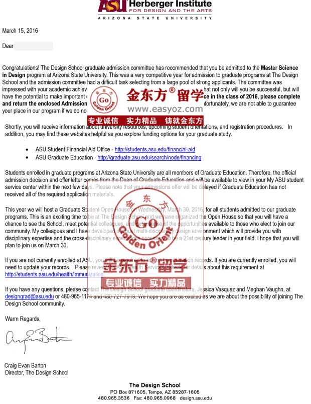 录取结果:亚利桑那州立大学环境与艺术设计硕士