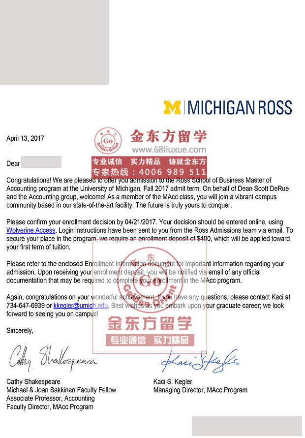 有了精彩的文书,H同学很顺利地获得了密歇根大学安娜堡分校会计硕士项目的录取。