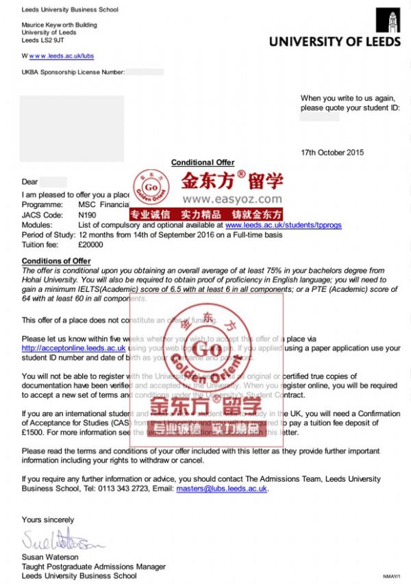 录取结果:利兹大学MSc Financial Mathematics